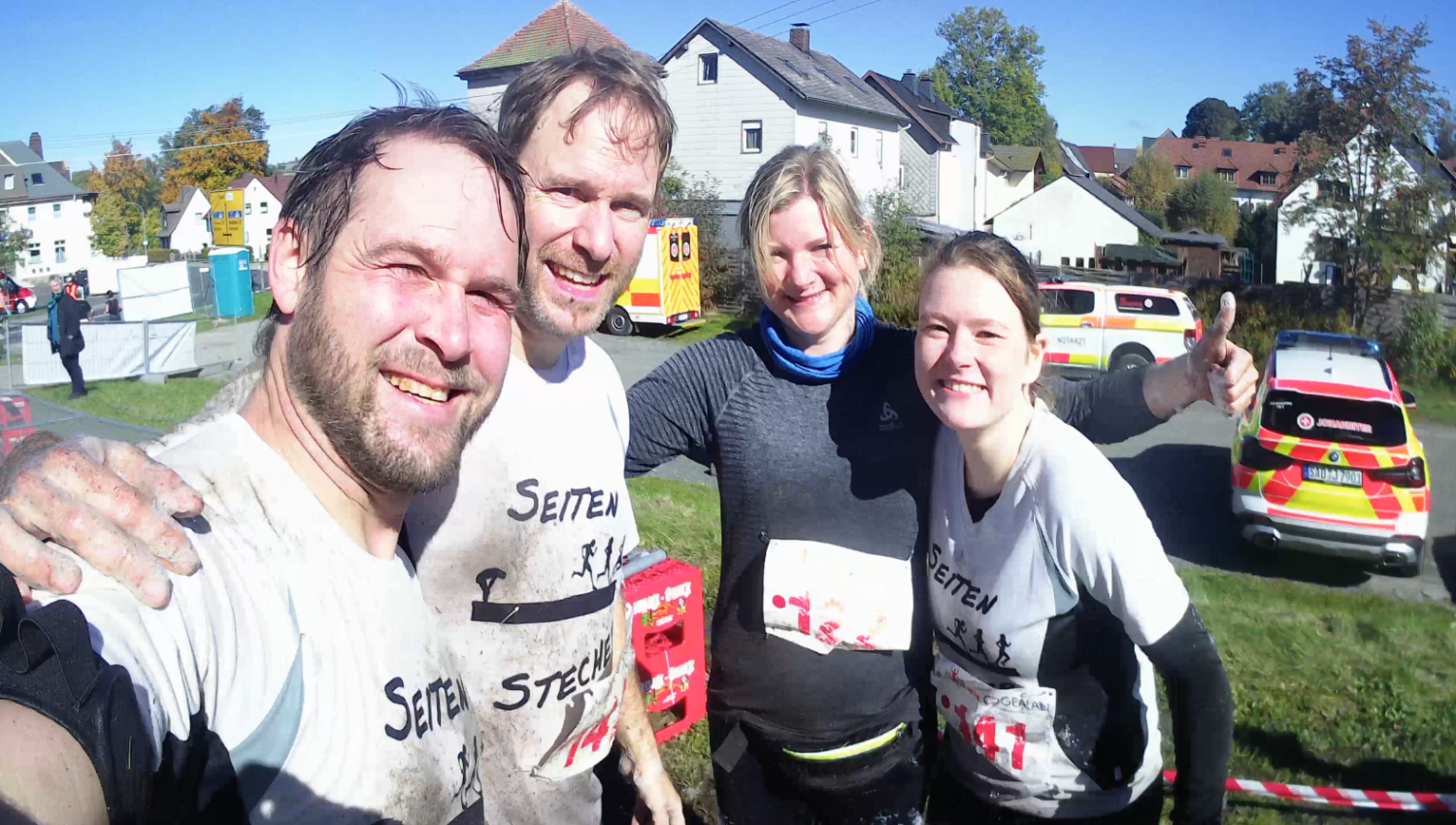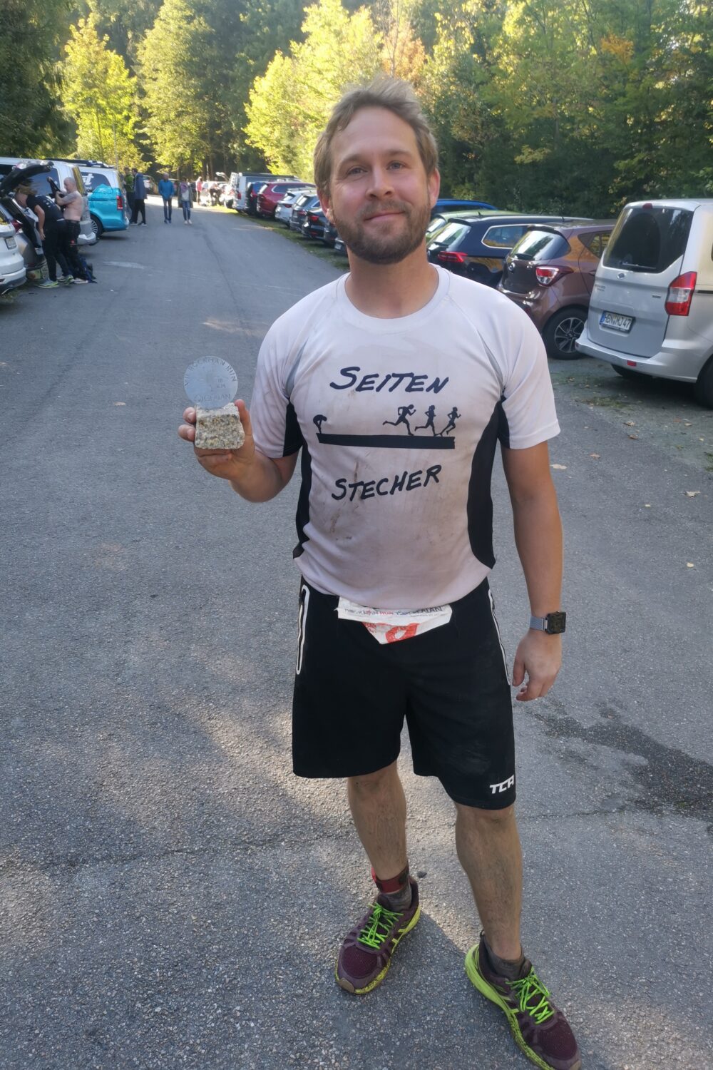 Unser erster gemeinsamer Auftritt als die Seitenstecher. Der Lauf an sich war für viele von uns kein Unbekannter, da einige von uns schon vorher als lose Gruppierung bei verschiedenen Matsch-Läufen teilgenommen haben. Der Rockman ist jedes Jahr wieder ein neues Erlebnis, da es sozusagen unser Haus-Lauf ist. Besonders Tobi ist dem Rockman Run verfallen. Es gibt noch keine Granit-Trophäe die er nicht sein eigen nennt.